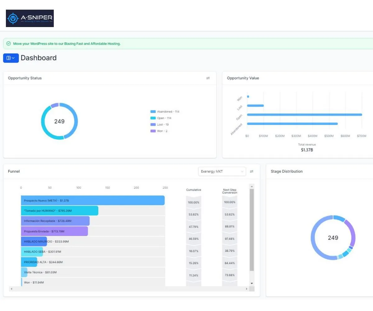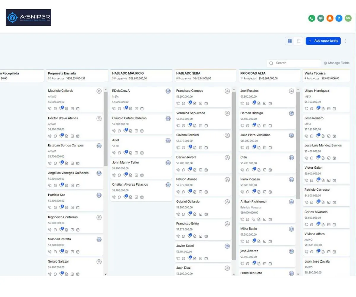 Podrás ver el proceso de todos y detalles de tus prospectos, así como el desempeño de todos tus vendedores.